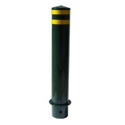 Σταθερό μεταλλικό κολωνάκι πεζοδρομίου κυκλικής διατομής με κίτρινες ανακλαστικές λωρίδες για να γίν..